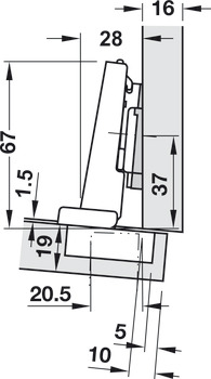 * Thông số kỹ thuật bản lề Blum cong nhiều giảm chấn gỗ dày 71B9750-9350293 (kèm đế):