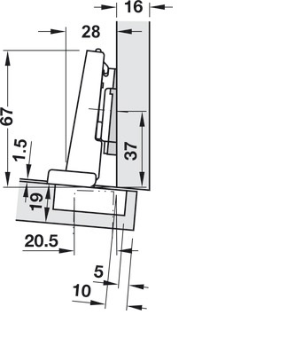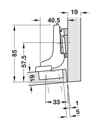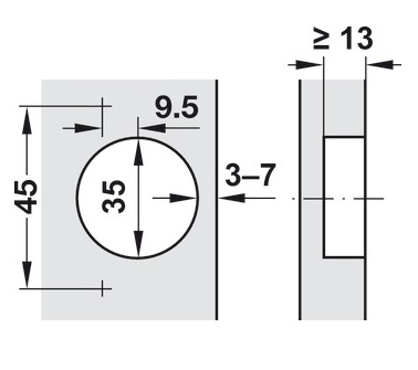 * Thông số kỹ thuật bản lề Blum thẳng giảm chấn gỗ dày 771B9550-9349303 (kèm đế):