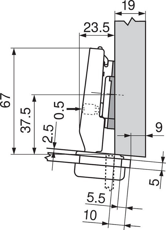 1. Tên sản phẩm: Bản lề cánh kính 94 độ Clip top Blum 75T4300 6458787 (cong nhiều, lọt lòng)