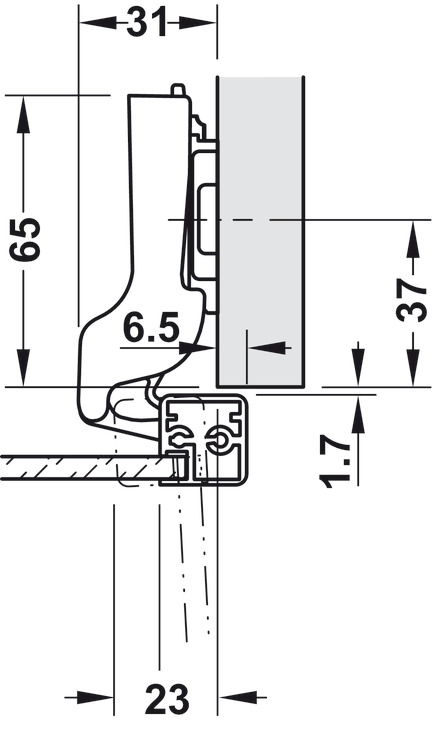 Sản phẩm: Bản lề 315.26.702, đế 311.71.540, 2 vít M3x10