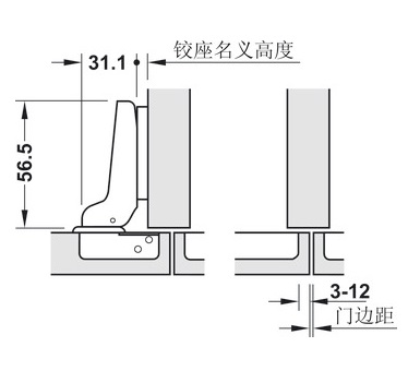 * Thông số kỹ thuật bản lề cong vừa không giảm chấn cho cửa gỗ dày 2,5-3cm Hafele Metalla A 311.81.502:
