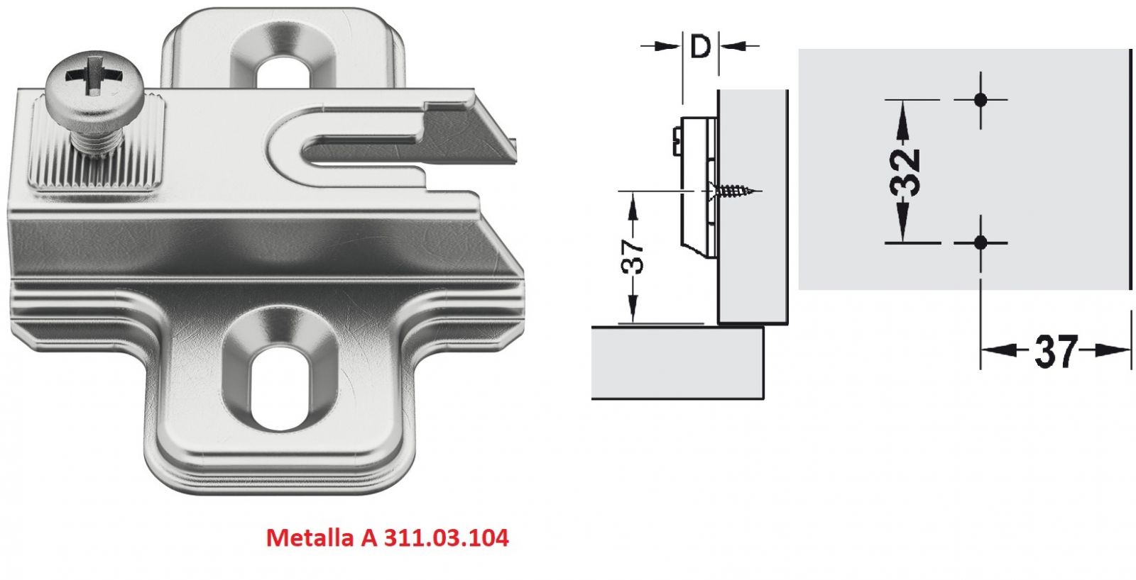 Sản phẩm bao gồm: 01 bản lề, 01 đế Metalla A 311.03.104