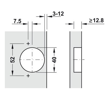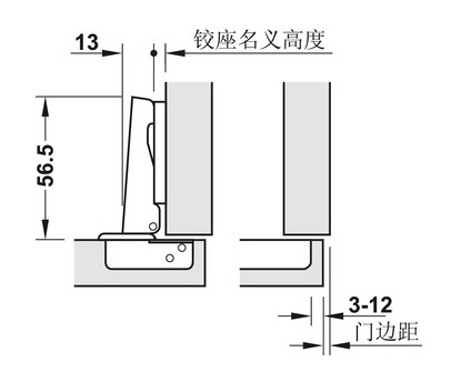 * Thông số kỹ thuật bản lề thẳng không giảm chấn cho cửa gỗ dày 2,5-3cm Hafele Metalla A 311.81.500: