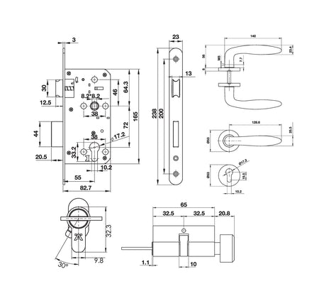 - Ruột khóa: 65mm, 1 đầu vặn 1 đầu chìa với 3 chìa khóa