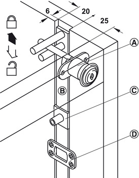 * Thông số kỹ thuật bộ Khoá trung tâm Symo Hafele cho 3 ngăn kéo 234.99.984: