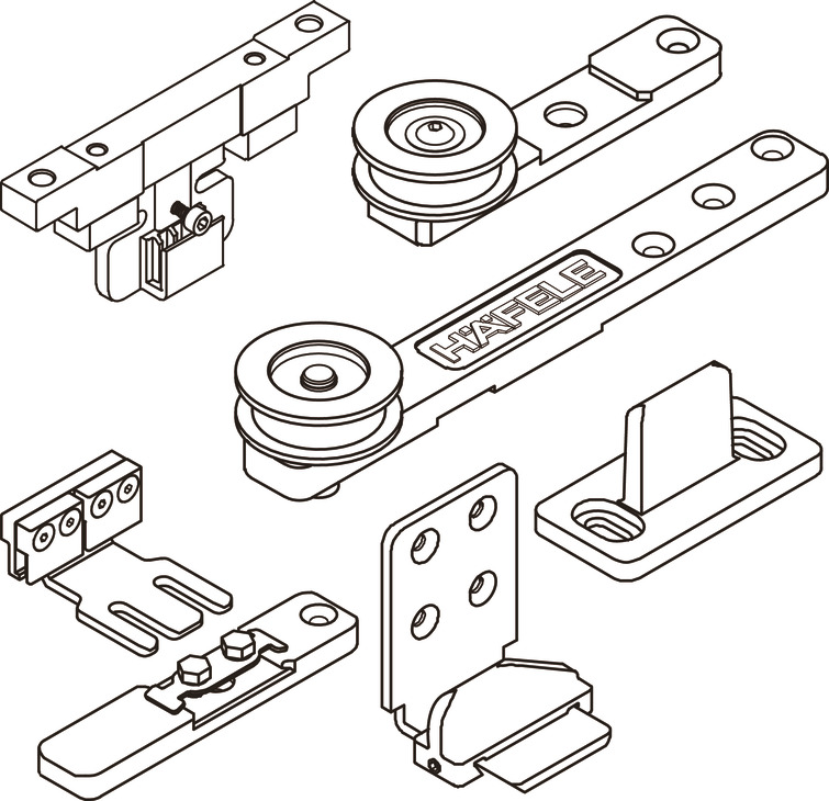 Tham khảo đặt thêm bộ Slido Classic 120-P 940.82.252: bánh xe chạy, chặn bánh xe, dẫn hướng, ray trượt và dây đai