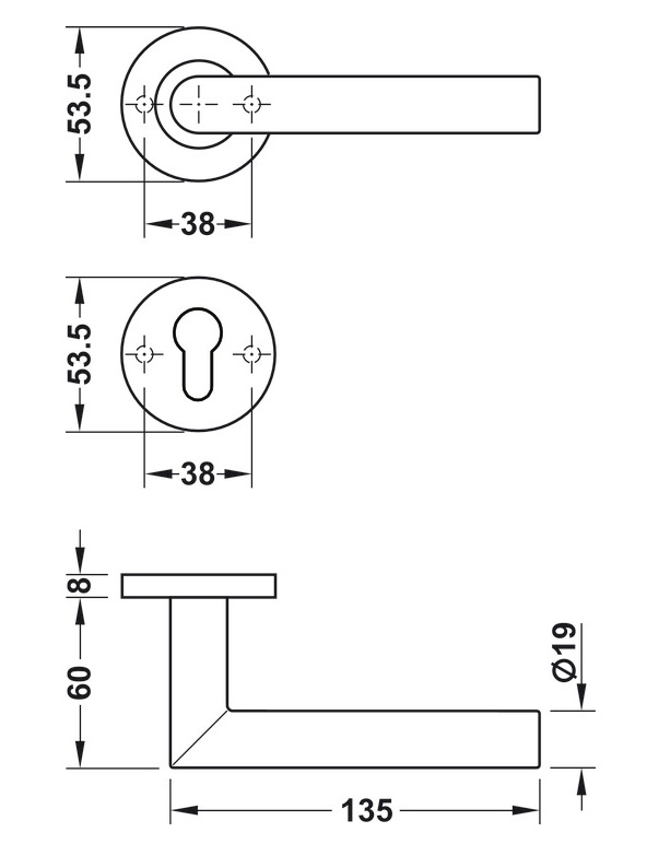 - Ø nắp che tay nắm/nắp che ruột khoá: 53.5 mm