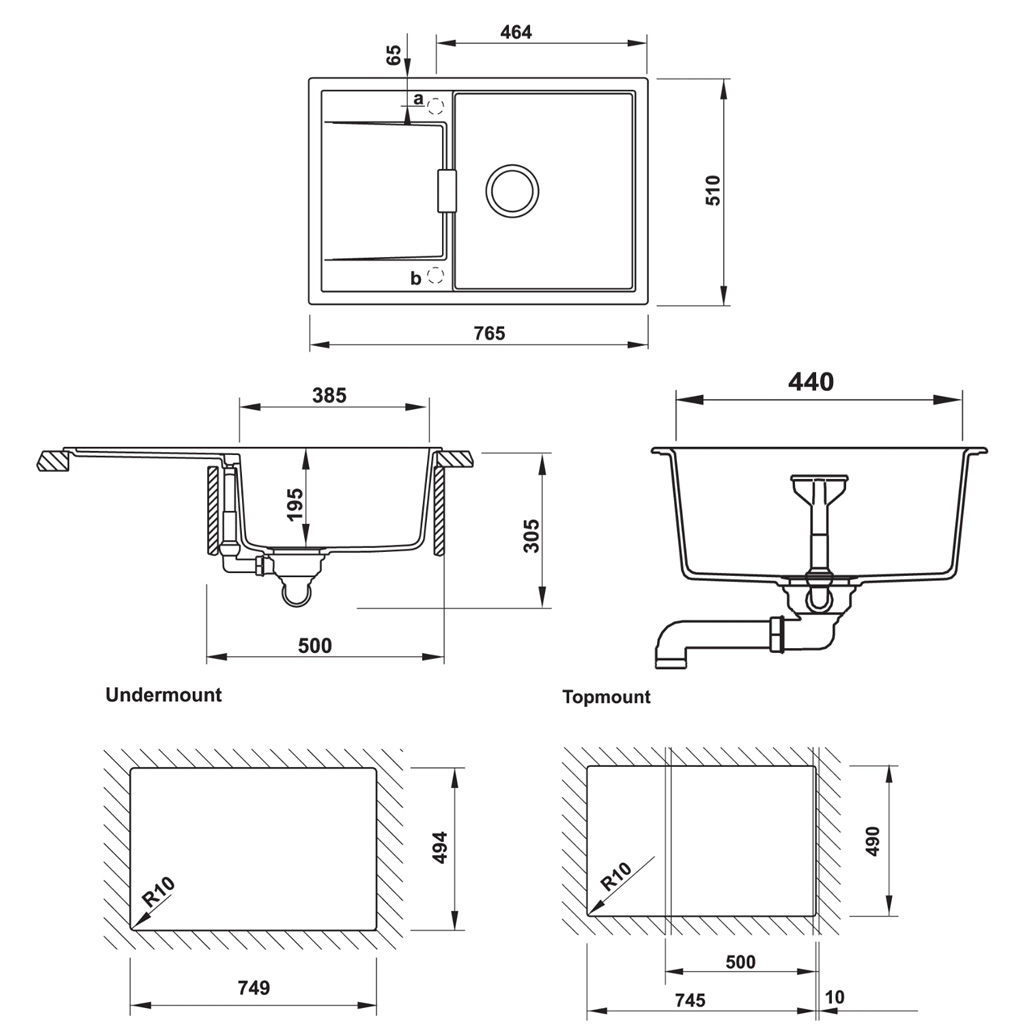 * Thông số kỹ thuật chậu đá 1 hố có bàn Hafele HS20-GKD1S60 màu đen 570.30.130: