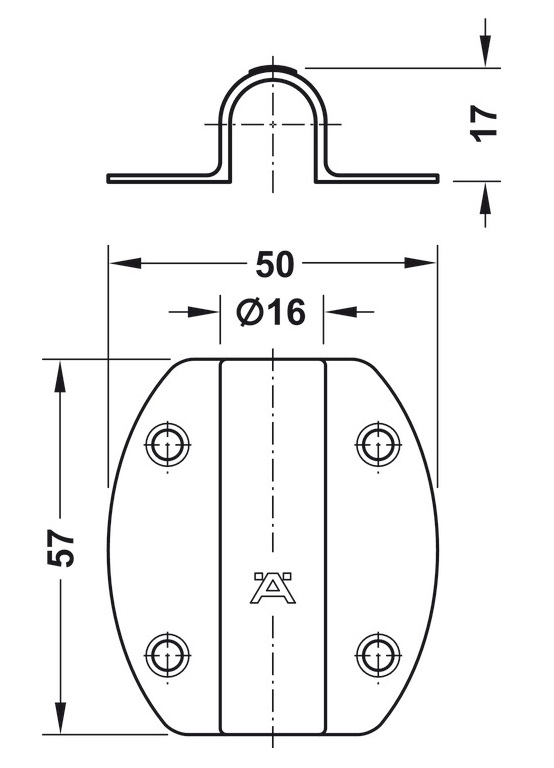 Ø 16 x D 57 x R 50 x C 20 mm |