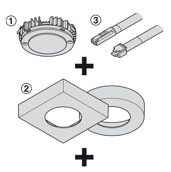 3. Thông tin chung đèn Led tròn gắn âm 2040 màu trắng ấm Modular Hafele-Loox 833.72.371 (kèm nắp âm 833.72.145 và dây nối 833.72.882)