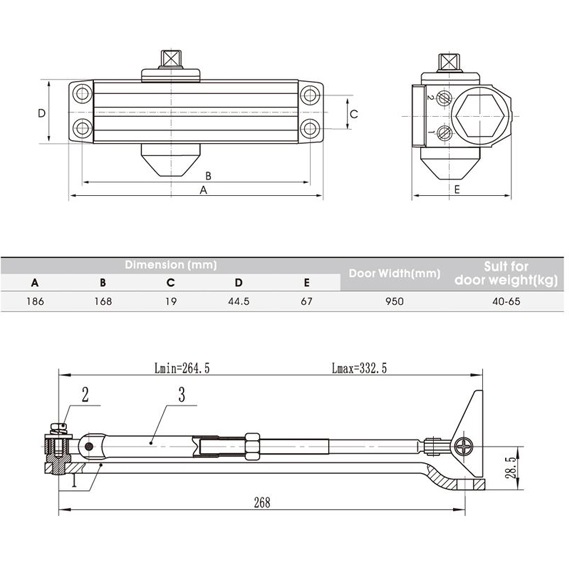 3 = rộng cửa: Max. 950mm; cửa nặng: 60 kg |