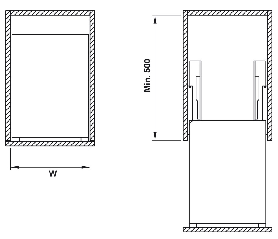 - Chiều sâu lọt lòng: Tối thiểu 500 mm