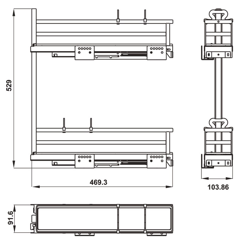 - Ray trượt giảm chấn lắp gài với rổ lắp bên