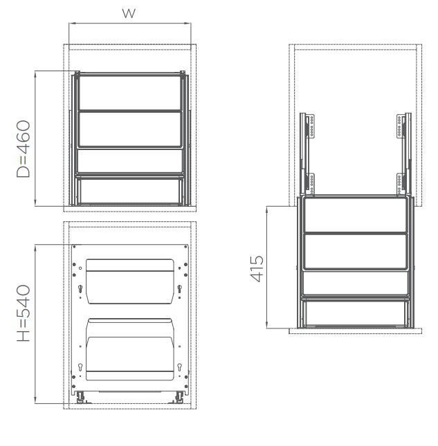 Đóng bộ sản phẩm: thùng khay, khung và các ray trượt toàn phần giảm chấn.