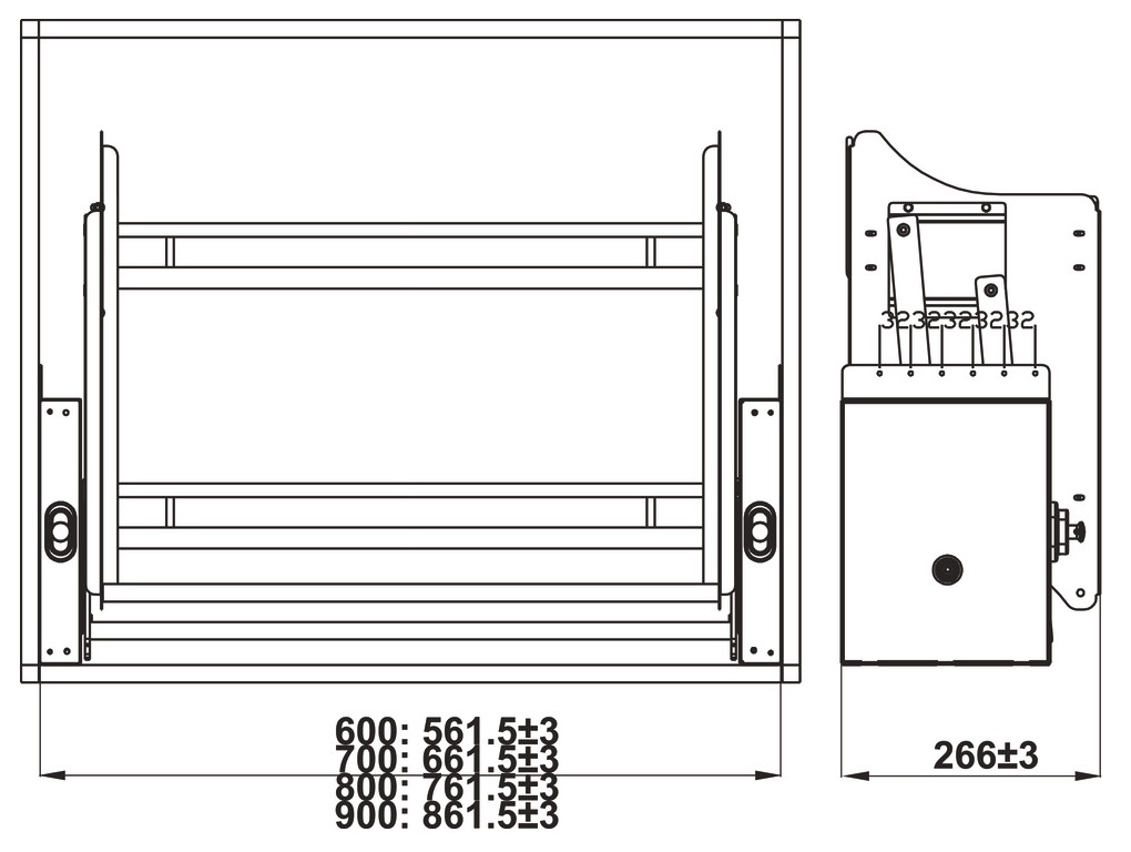 * Thông số kỹ thuật giá nâng hạ Hafele Oria 700mm 504.76.815: