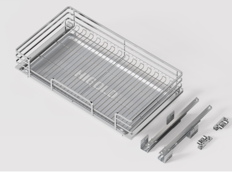 Giá xoong mở toàn phần, giảm chấn, bề mặt điện phân, nan dẹt inox304 Lắp âm/gắn cánh |