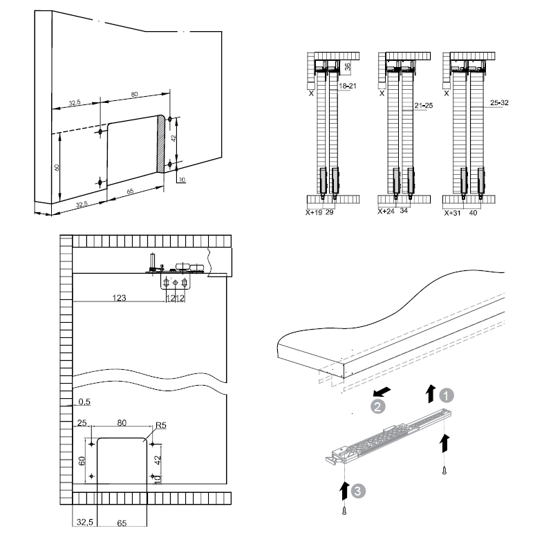 - Chức năng: giảm chấn khi đóng tủ (2 hoặc 3 cánh) sử dụng phụ kiện Slido Classic 50 IF;