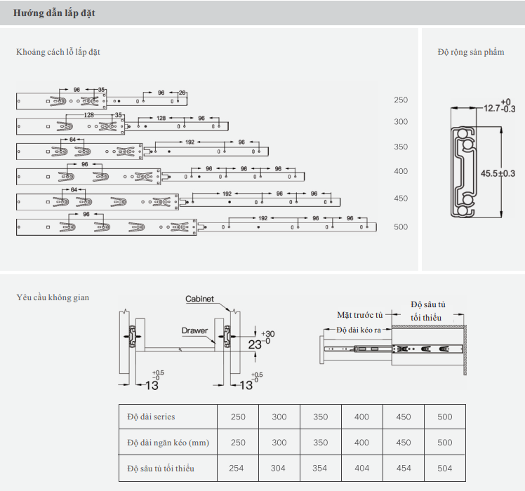 Đóng bộ sản phẩm: 1 bộ cặp ray bi, qui cách 10 bộ/thùng.