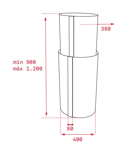 Dài 900-1200mm Đường kính dưới D400mm, trên D380mm |