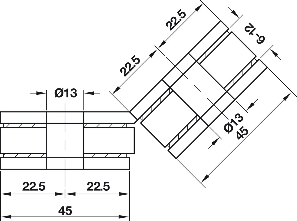 1. Tên hàng: Kẹp nối kính 135D, HAFELE 981.00.572 (Crom bóng)