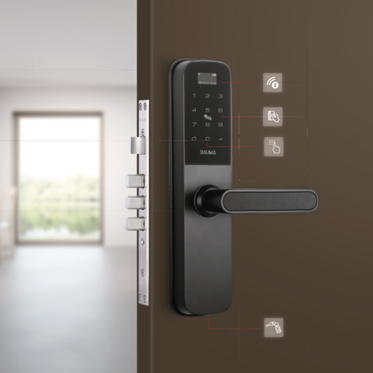- Chức năng mở cửa với 4 phương pháp: vân tay, mật mã, chìa cơ, thẻ từ và từ xa zigbee (lựa chọn mua thêm):