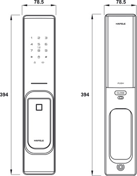 * Thông số kỹ thuật khóa điện tử vân tay - thẻ từ - số - bluetooth Hafele PP8100 màu vàng đồng 912.20.287: