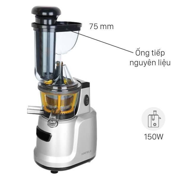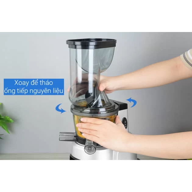 - Ống tiếp nguyên liệu rộng 75mm: Dễ dàng cho cả trái cây hoặc nguyên miếng lớn vào ống, giúp tiết kiệm thời gian sơ chế.