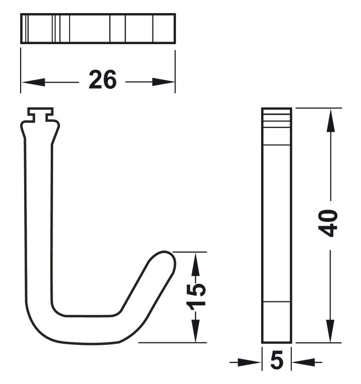 * Thông số kỹ thuật móc treo đơn treo tường bếp Hafele 523.00.390 đen mờ: