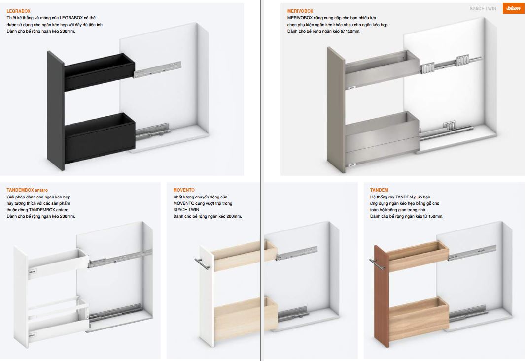 1. Tên sản phẩm: Ngăn kéo hẹp Space Twin Legrabox chiều cao M-C 20kg Blum 7915624 8561354
