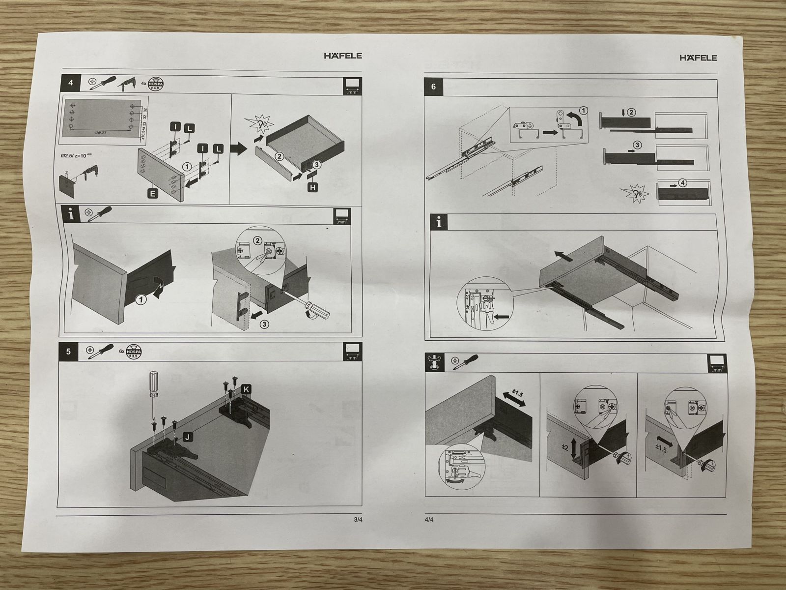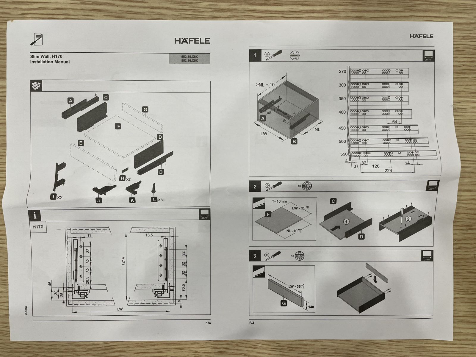Tải trọng ngăn kéo 30kg; Chiều cao vách S4: 170mm; Chiều dài ray (L): 500mm; Chiều cao lọt lòng: ≥ 214mm; |