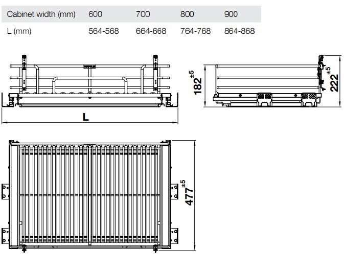 549.04.054 (600mm, 564x468x182mm) 549.04.055 (700mm, 664x468x182mm) 549.04.057 (900mm, 864x468x182mm) |