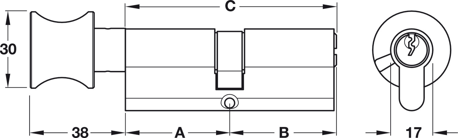 1. Tên hàng: Ruột khóa đầu chìa đầu vặn 60mm Hafele 916.96.307