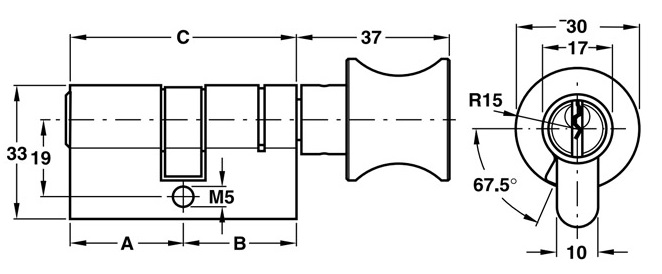 * Thông số kỹ thuật ruột khoá Hafele đầu chìa đầu xoay 65mm màu đen mờ 916.64.922: