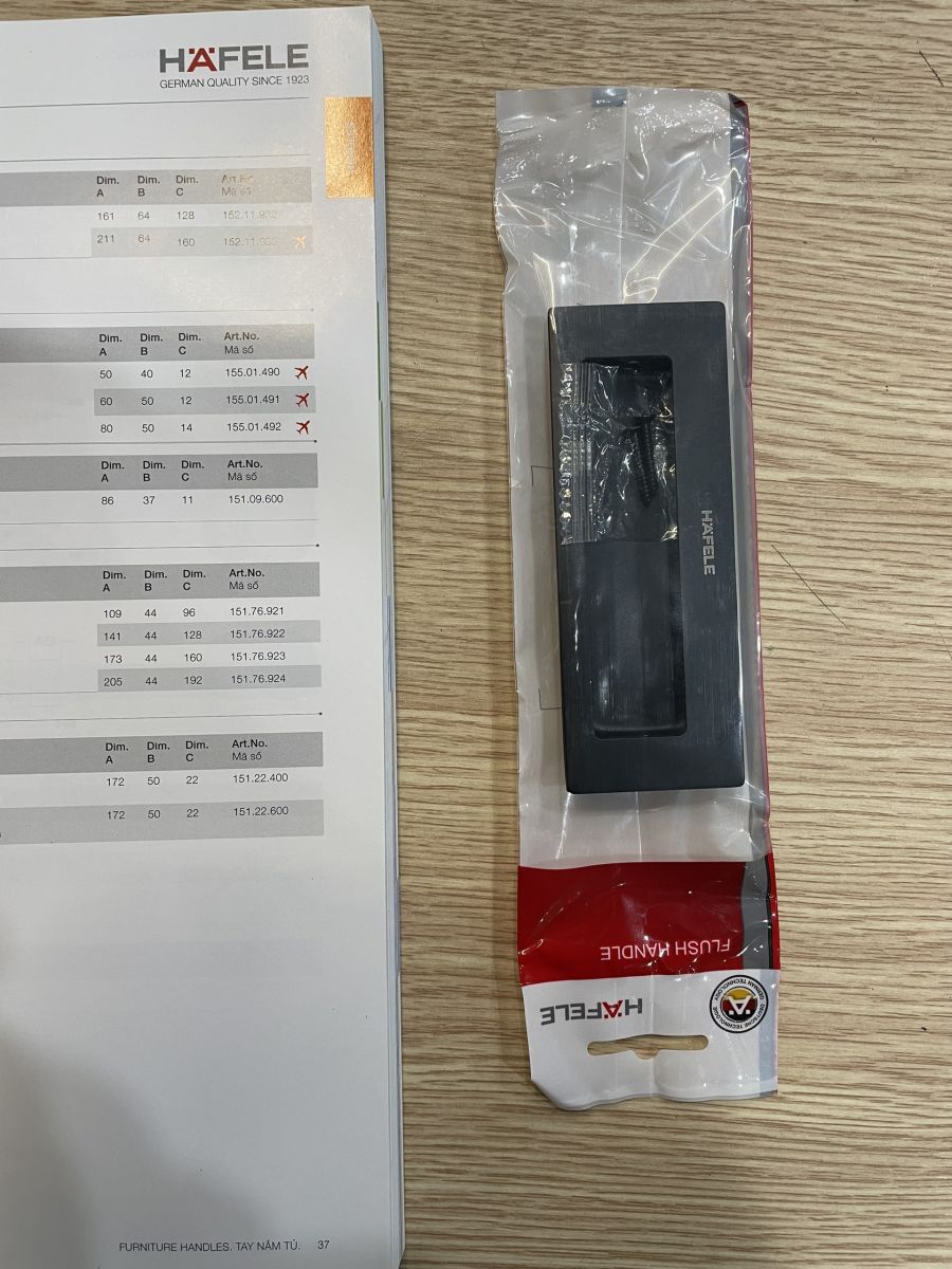 1. Tên hàng: Tay nắm âm Hafele 489.72.135 (Đen mờ)
