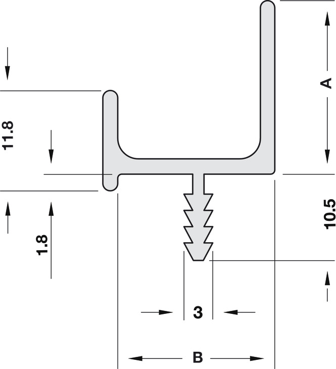 1. Tên hàng: Tay nắm dạng thanh nhôm dài 3000mm, cao 30mm Hafele 126.27.906 (Màu bạc)