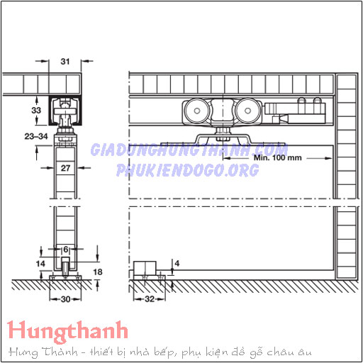 * Thông số kỹ thuật thanh nhôm trượt dài 3m Hafele cho cửa 100kg 940.43.932: