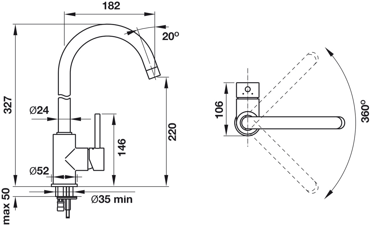 Kích thước khoan lắp vòi |