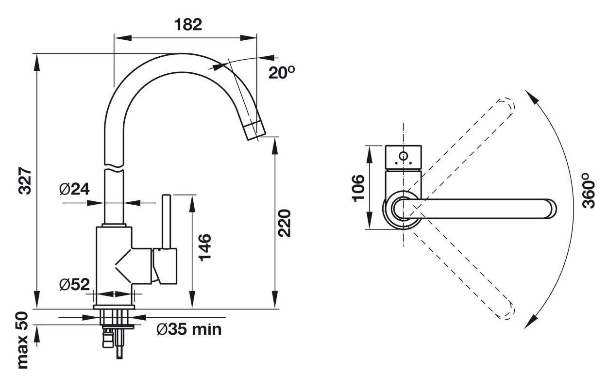 * Thông số kỹ thuật Vòi rửa bát đá Blancomida Anthracite 569.07.300: