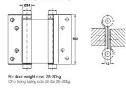 Chức năng: Bản lề cho khung gỗ,cửa gỗ đóng mở 2 chiều thích hợp cửa ra vào thường xuyên cả mở trái, mở phải DIN.