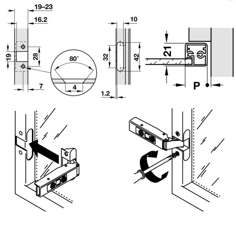 Sản phẩm: Bản lề 315.26.702, đế 311.71.540, 2 vít M3x10
