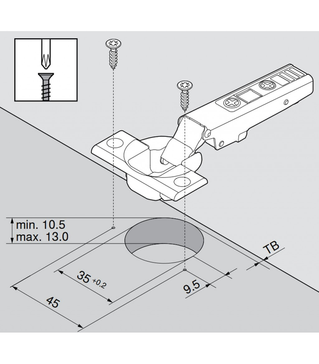 1. Tên sản phẩm: Bản lề không bật CLIP top 107 độ BLUM 74T1550.TL 7657333 (Thẳng - trùm hết, kèm đế)