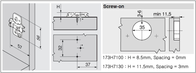 - Chức năng: dành cho nội thất không tay nắm sử dụng công nghệ TIP-ON, bản lề không bật