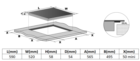 Bếp từ kết hợp điện 73cm, 2 vùng nấu Hybrid HAFELE HC-H7321B 536.61.856 (Inverter)