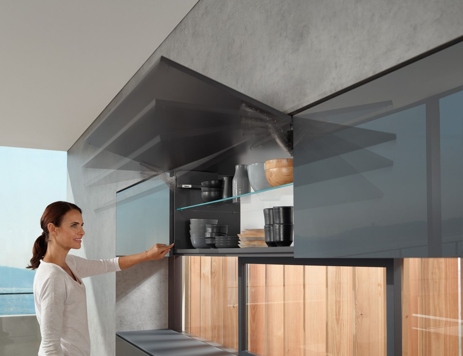 Bộ tay nâng mở lên cho cửa tủ 1 cánh, dạng tủ treo cao |
