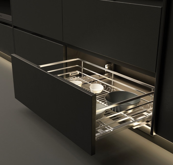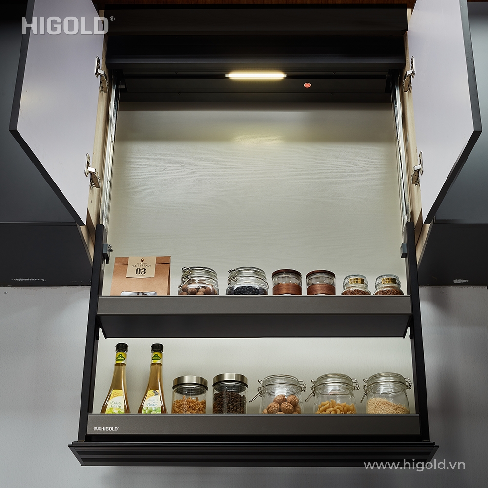 Chức năng: Giá bát đĩa có thể nâng hạ thuận tiện cho việc lưu trữ ở trên tủ cao