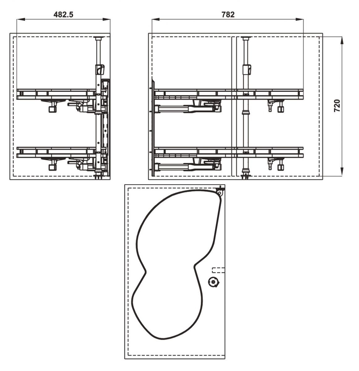 * Thông số kỹ thuật giá góc hình lá Hafele Olla Move mở phải 541.01.804: