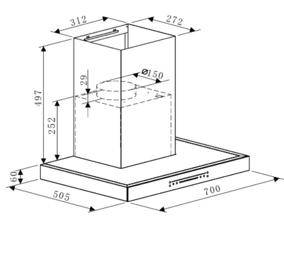 >>>Hút gắn tường chữ T 70cm, HAFELE HC-W705B 533.87.377 (750m3/h)