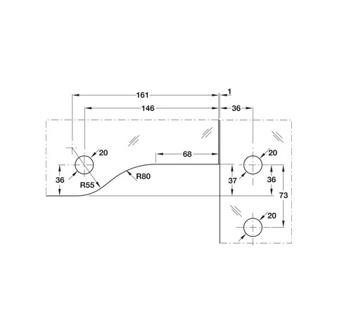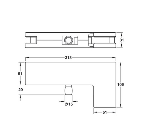 * Thông số kỹ thuật kẹp kính hình chữ L Hafele inox bóng 981.00.031: