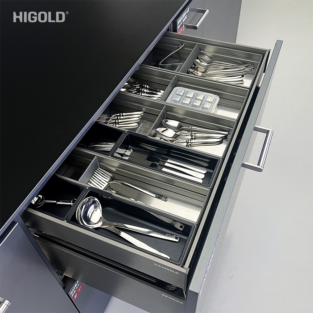 Ứng dụng: Khay lưu trữ thìa dĩa trong ngăn kéo tiêu chuẩn dài 500mm, rộng tủ 600-900mm).
