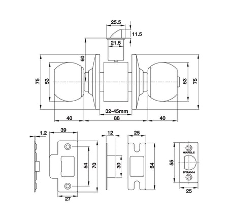 * Thông số kỹ thuật khoá quả nắm tròn Hafele inox 304 cho WC 489.93.135: